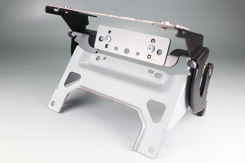 機構開発設計提案 採用事例 センターコンソール用ヒンジ センターコンソール用ヒンジ 同一軸上で違う2種類のヒンジ動作を実現しています。 搭載重量と必要操作力から最適のトルクをご提案します。 自社で持つプレス絞り加工技術を活用し、 高強度と軽量化を両立しています。 精密プレス加工技術の応用で接触部に対する擦傷性対策を可能にします。